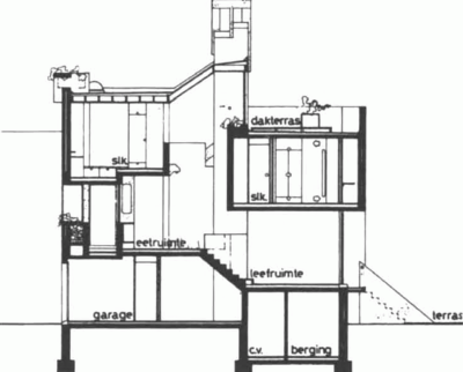 Doorsnede: Een tekening van een voorwerp of huis alsof het is doorgesneden en je tegen de binnenkant aan kijkt.