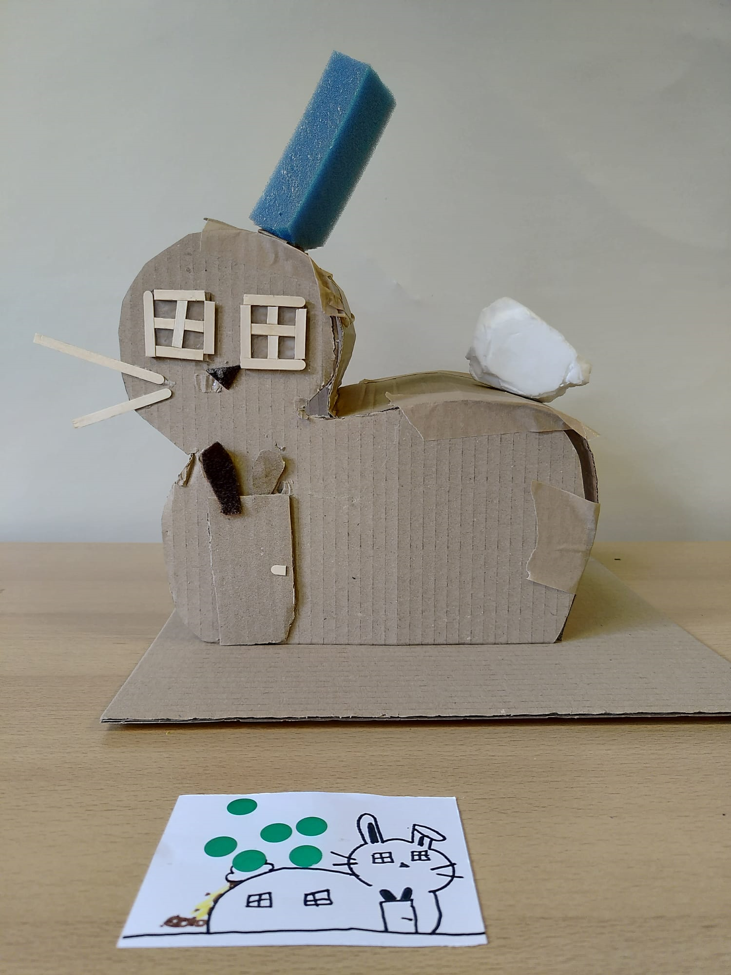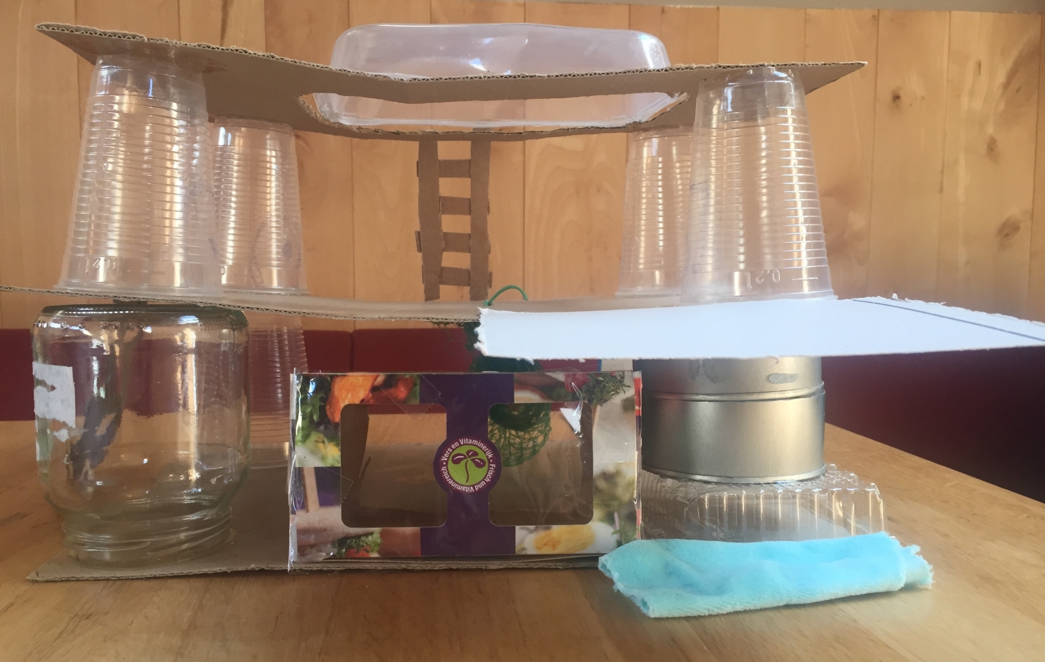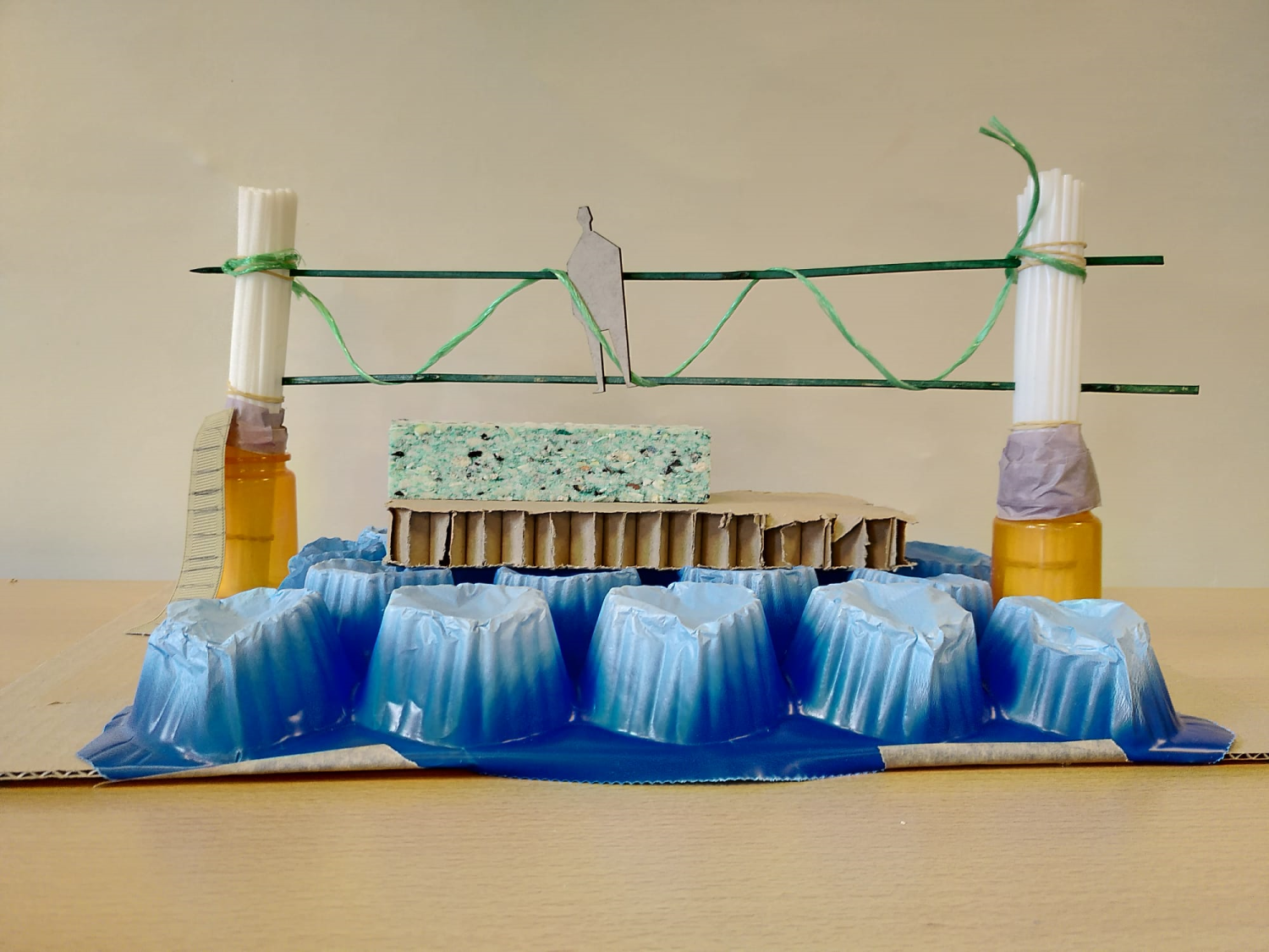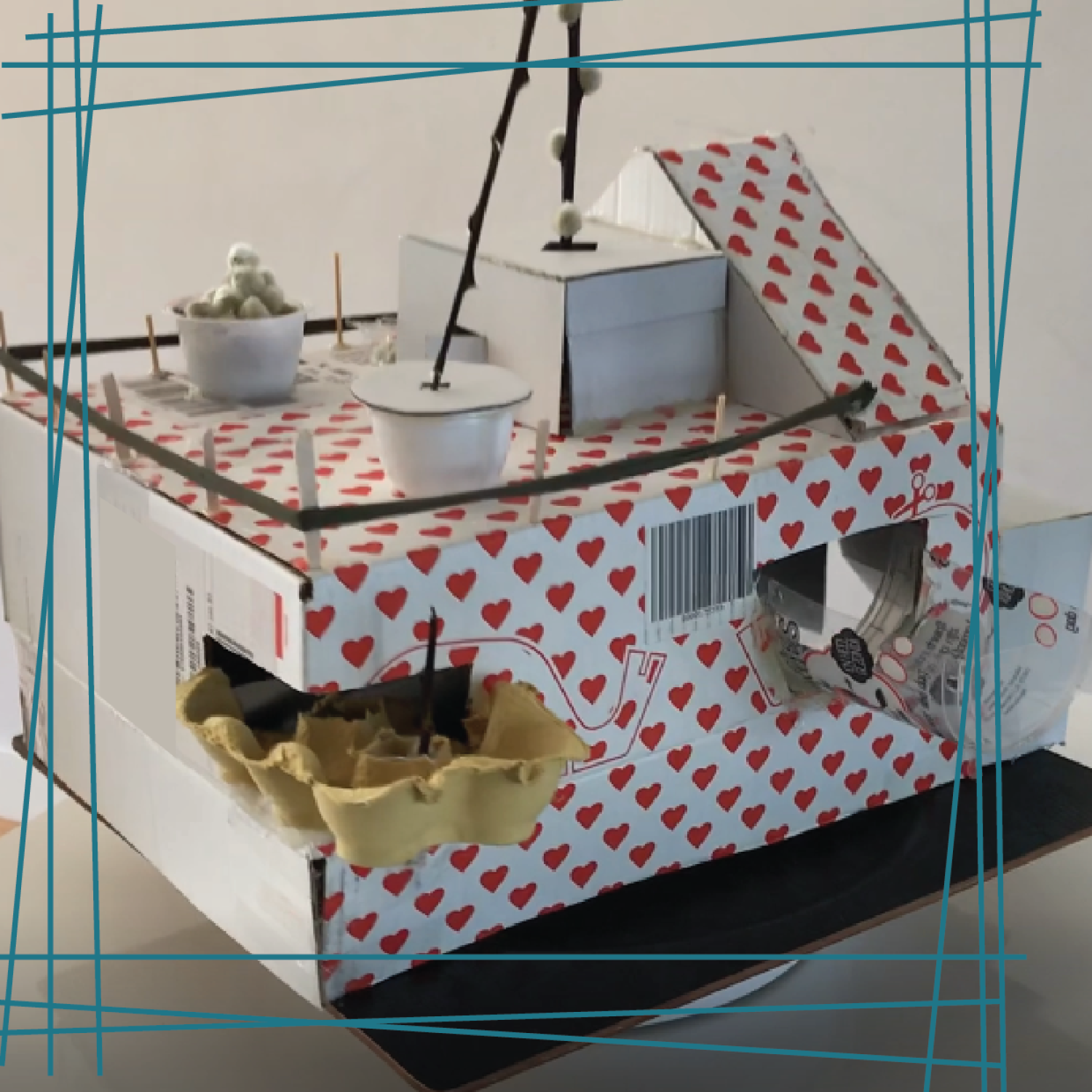 4. Maak een maquette van jouw ontwerp door het afval aan elkaar te maken. Je kunt het ook versieren met gekleurd papier, of door op je maquette te tekenen.