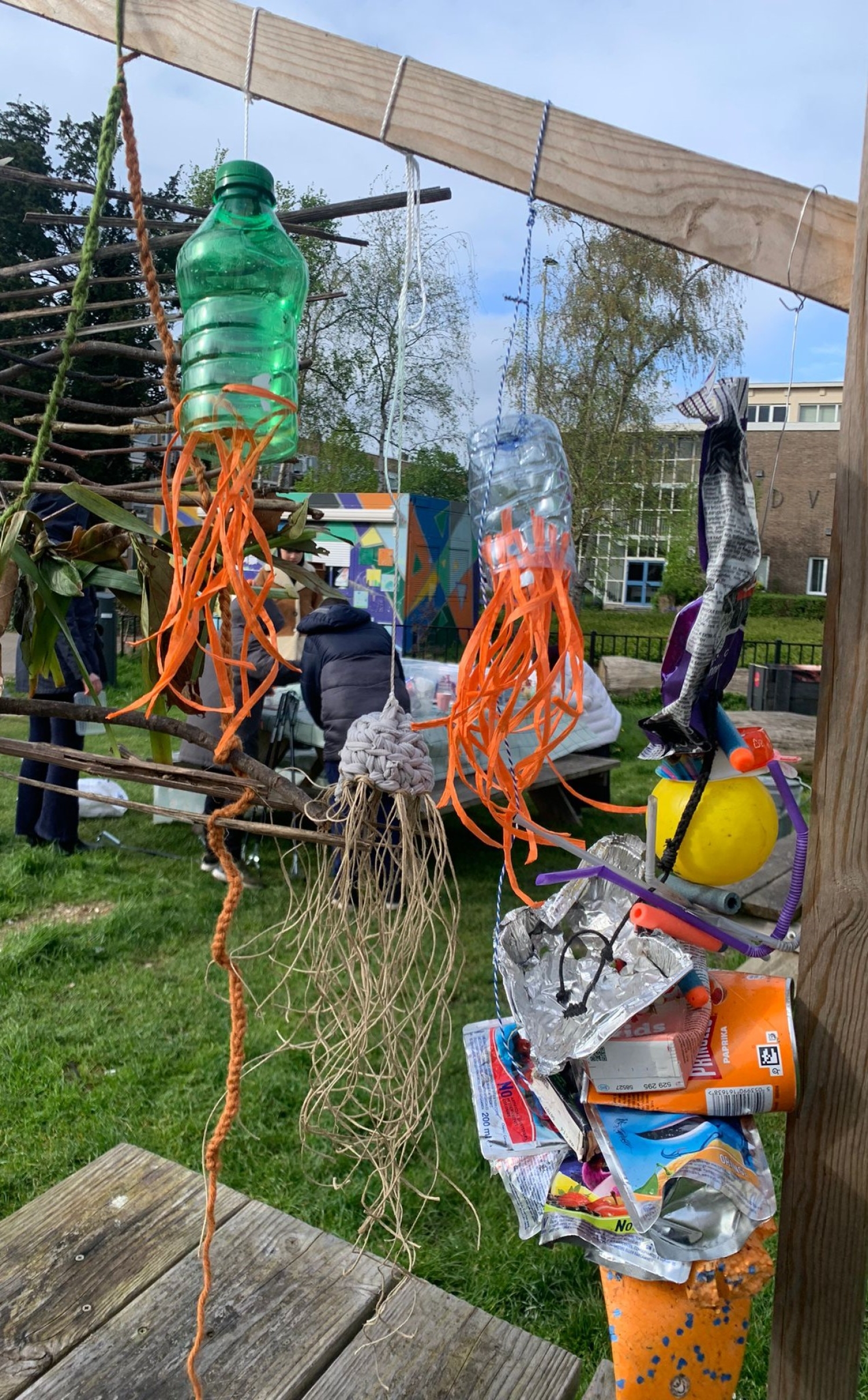 Bij veel activiteiten nemen de kinderen iets mee naar huis, maar soms bouwen we ook iets dat op het plein blijft, zoals een waterbak, schaduwwand, insectenhotel of regenmuur.