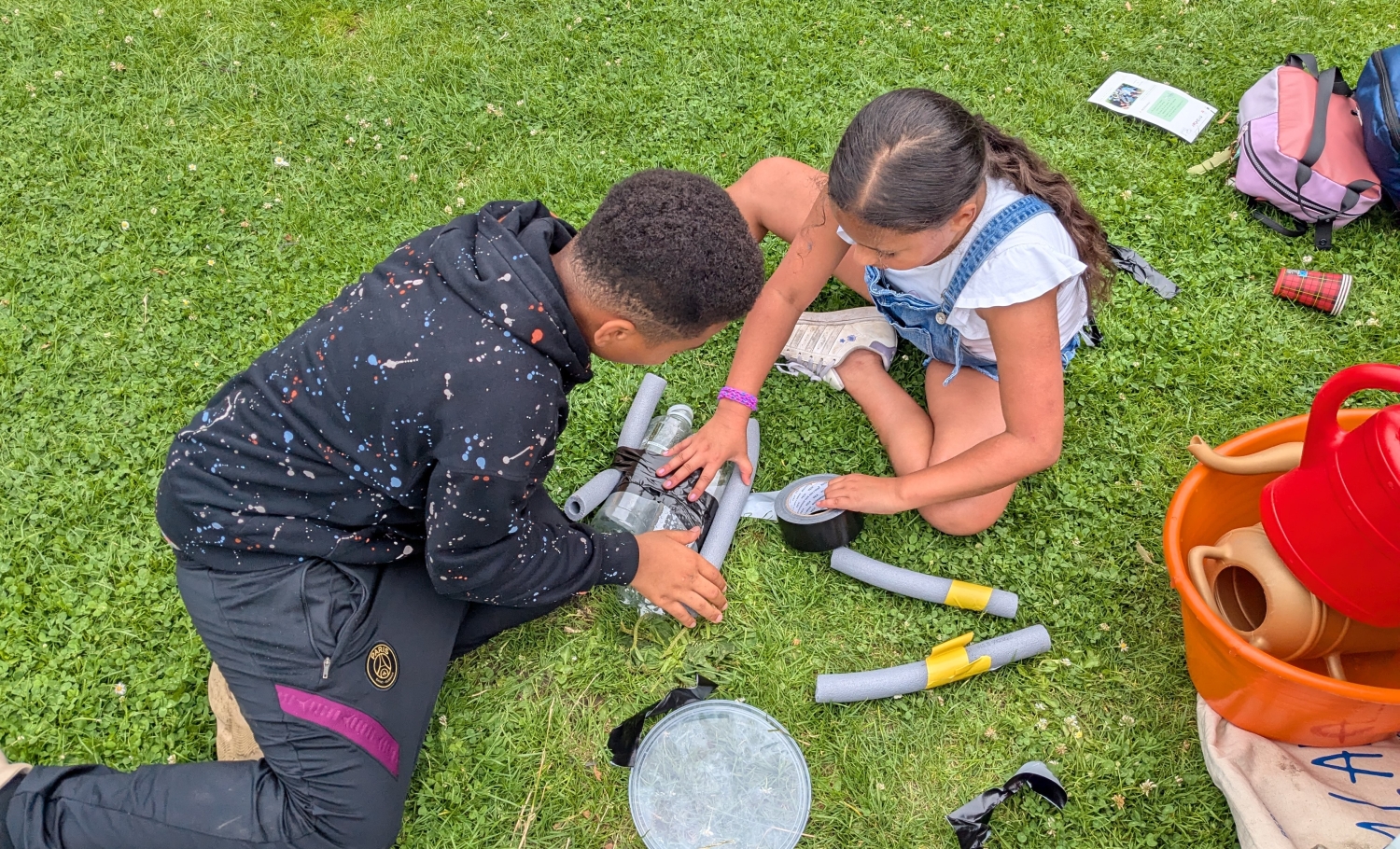 Tijdens de ateliers ontdekken kinderen de rol van water in de stad en hoe het zich gedraagt in verschillende omstandigheden.