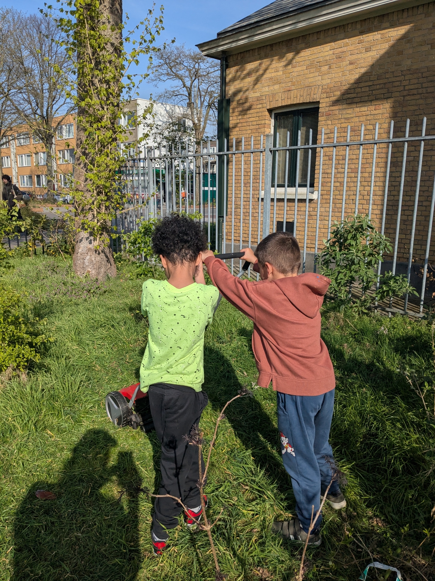 Tijdens het Atelier zijn er verschillende activiteiten te doen die passen bij verschillende leeftijden en interesses. Vaak beginnen we met het lezen van een stukje uit een prentenboek en gaan we vervolgens de kennis die we opdoen verwerken in een creatieve opdracht, ontwerpopdracht of bevestigen met een experiment. Ook verzorgen we met de kinderen het zelfbeheer plekje op het Amelandseplein door het gras te maaien, planten en bloemen te zaaien en afval te prikken.