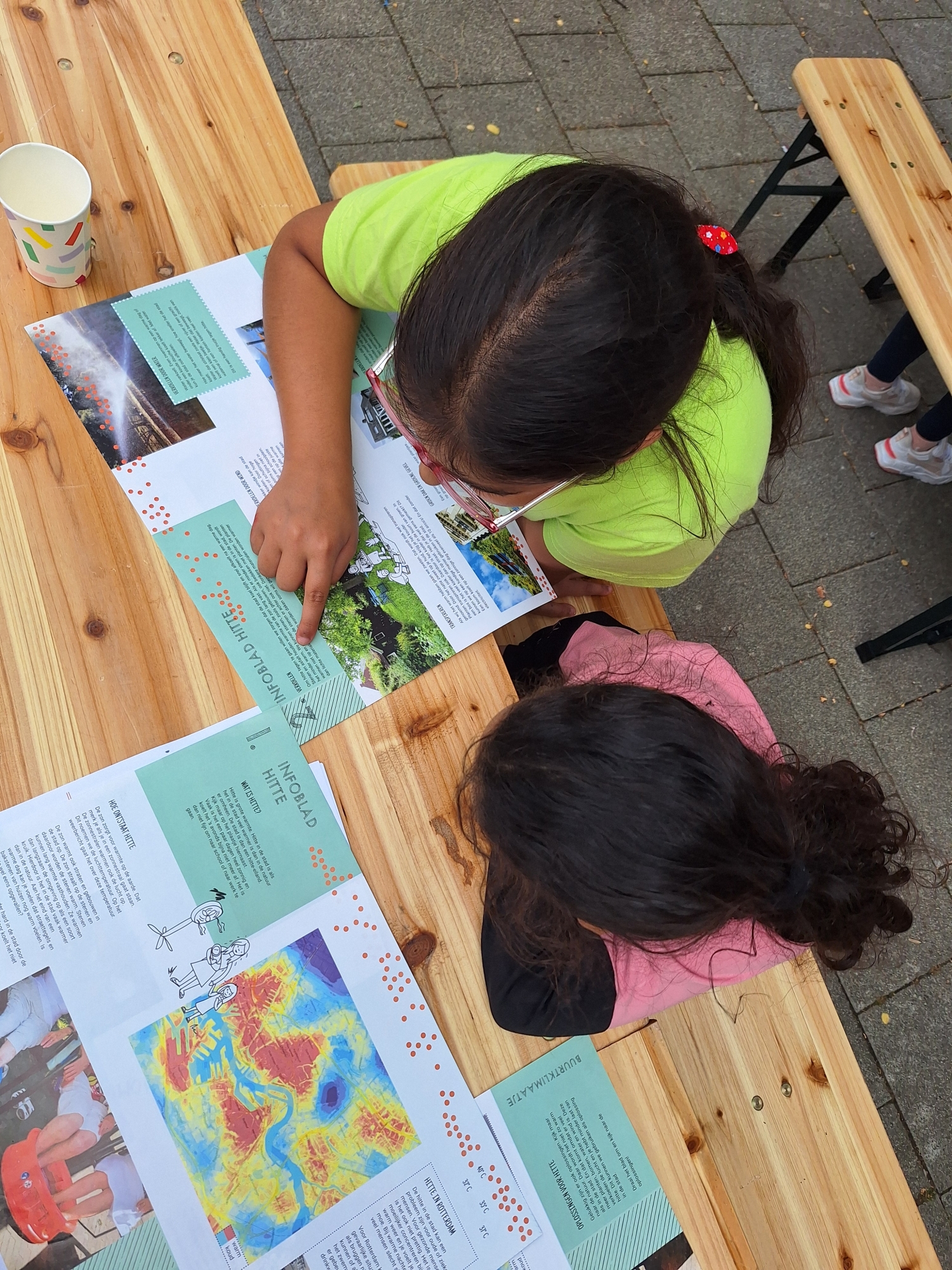 Om kinderen te betrekken bij de inrichting van hun buurt hebben we een programma op maat ontwikkeld om kinderen te laten meedenken over de toekomst van het Gerrit Sterkmanplein. Een relevante opdracht als het gaat om een speel- en sportplek. In vier sessies hebben kinderen een volledige ontwerpcyclus doorlopen. Ze zijn begonnen met een onderzoek naar het klimaat op het plein: waar gaat het water naartoe als het regent, is er wateroverlast, en hoe komt dat? Ook hebben ze onderzocht wat er te doen is op het plein, en voor wie het plein wel en niet leuk is. Vervolgens hebben ze meer geleerd over oplossingen om overlast door extreme regenval of hitte tegen te gaan. Met deze kennis konden de kinderen aan de slag met het bedenken van ideeën voor het plein. Wat is leuk én helpt bij het verkoelen van het plein of kan regenwater opvangen of makkelijker laten infiltreren? Na veel brainstormideeën hebben de kinderen hun beste idee op het plein getekend en vervolgens gebouwd in het klein. Zo ontstonden er glijbanen met regenopvang, beplanting gecombineerd met avontuurlijke parcoursen en een schommel met een groen dak.